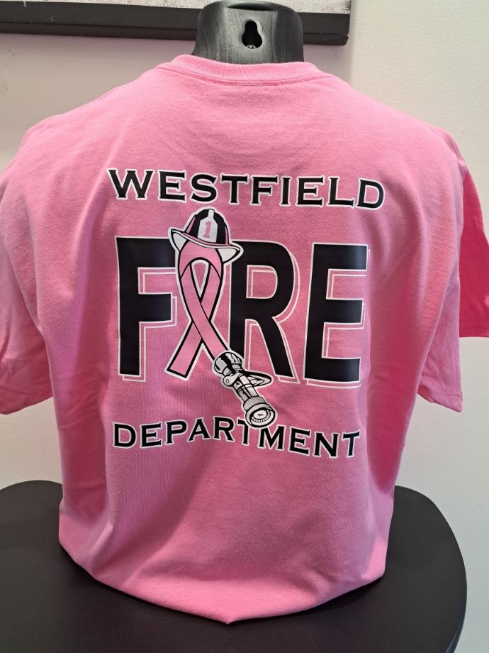 One example is our recent project with the Westfield Fire Department, who partnered with us to create pink heat press shirts for their personnel. These shirts not only stand out visually but also carry an important message: that the department stands with those fighting breast cancer and remembers those lost.